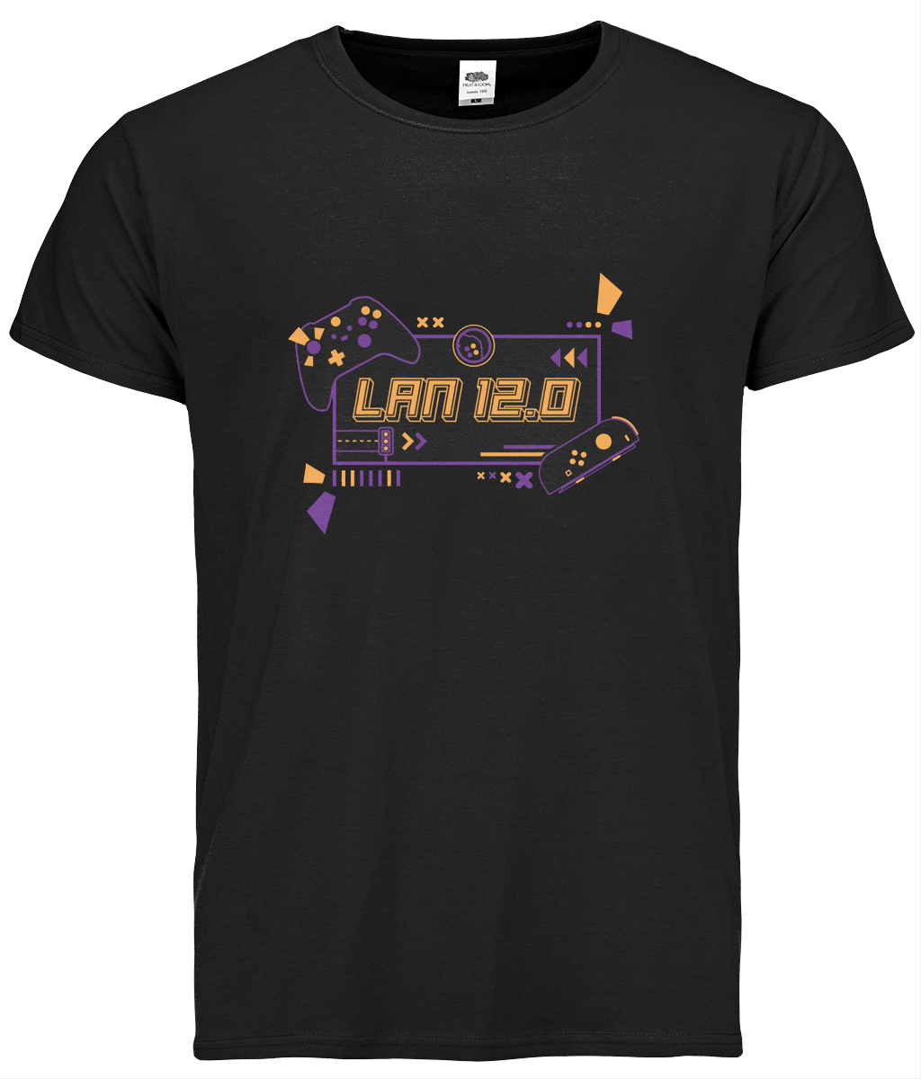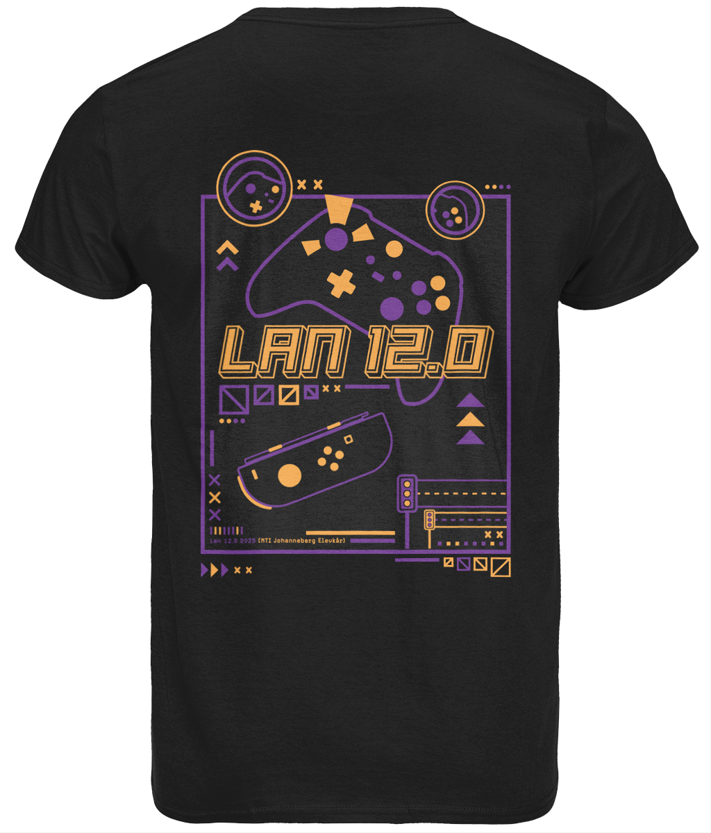 Enfärgad unisex-tshirt i 100% kammad ringspunnen bomull med LAN-tryck på fram- och baksida.